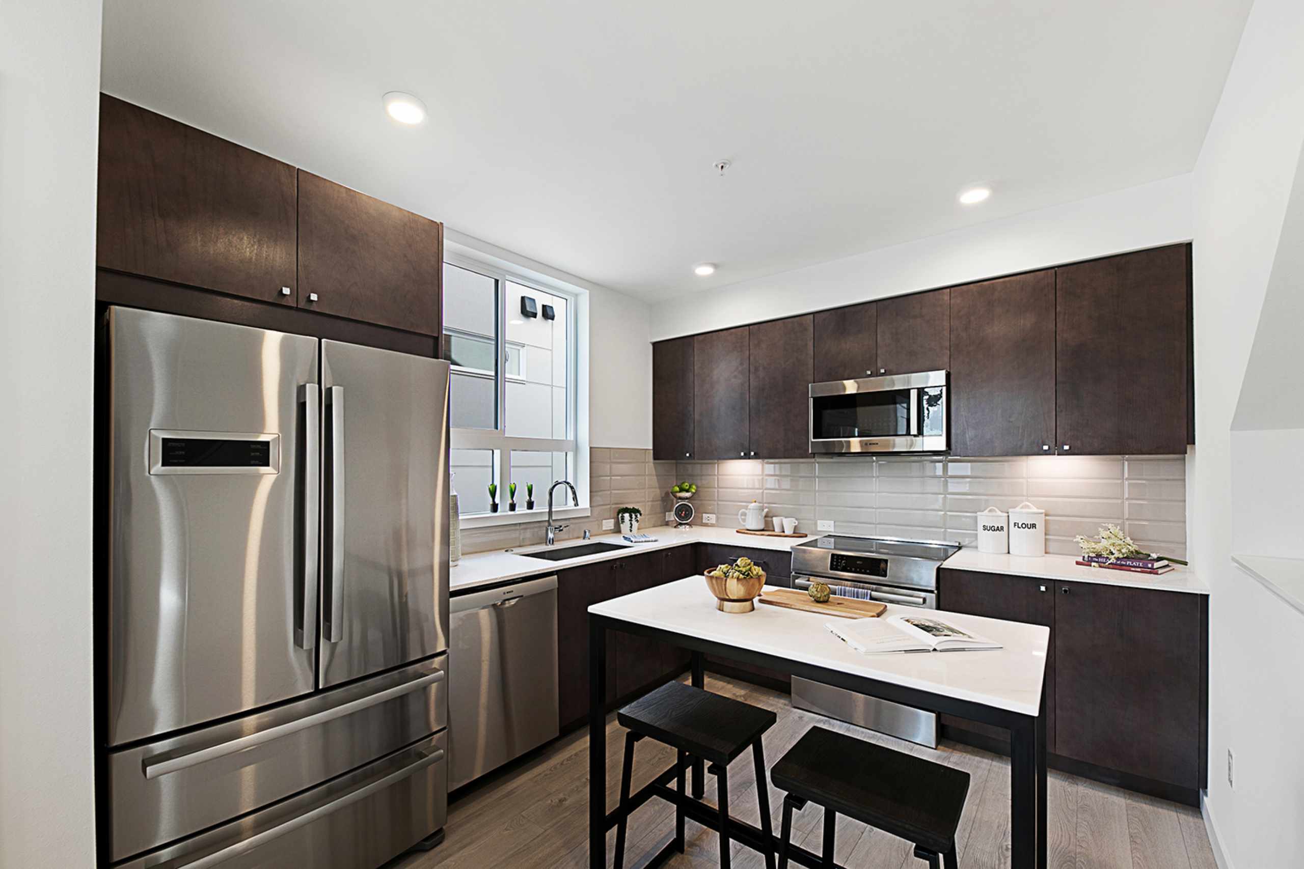 Sleek, European-inspired cabinetry with soft-close technology
