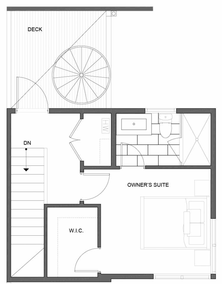 Spiral staircases to roof decks with ornamental metal railings